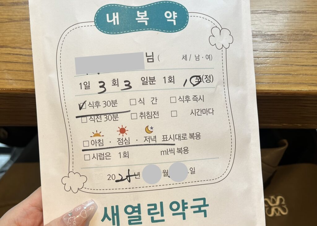 薬剤師さんからは韓国語で説明を受けましたが、同じ内容をクリニックの通訳さんからも聞いていたので、特に疑問はなかったです。3日分のお薬がもらえます。